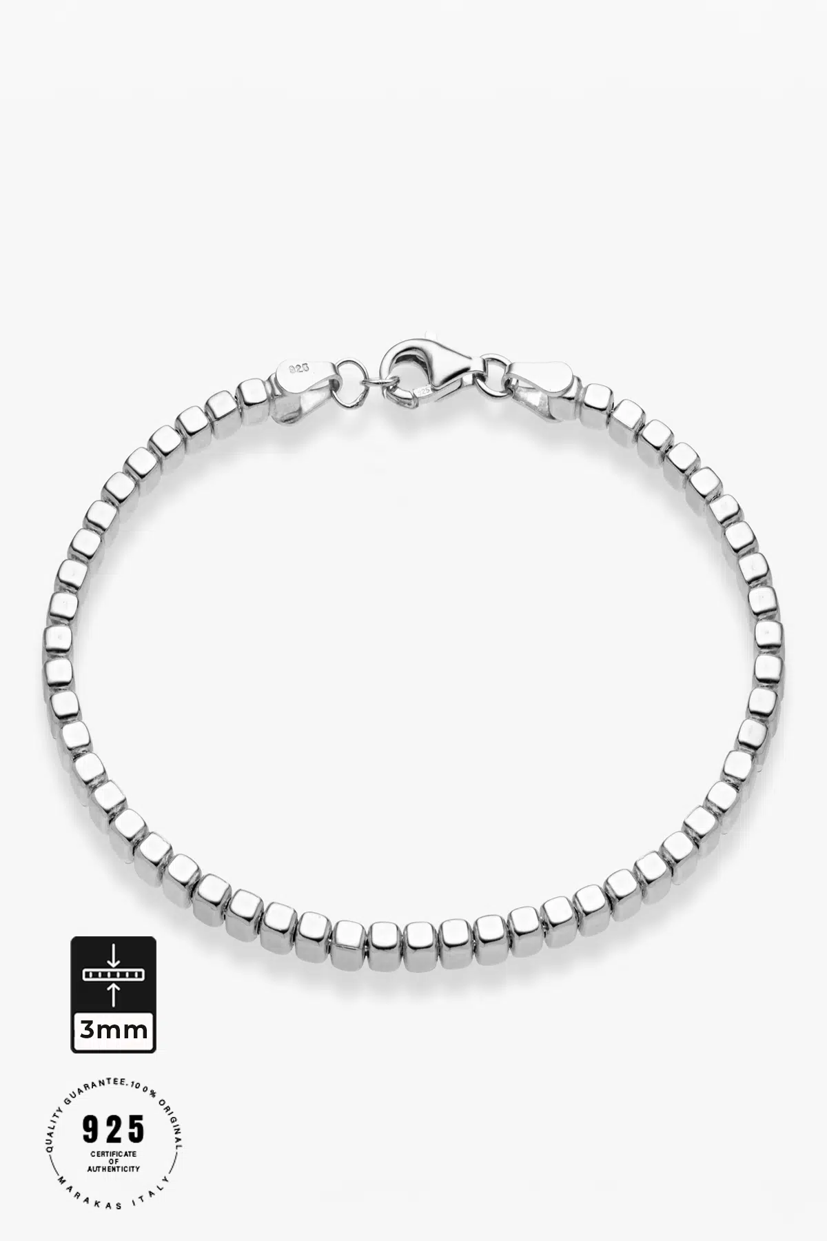 3mm Küp Boncuk Zincir 925 Ayar Gümüş Bileklik