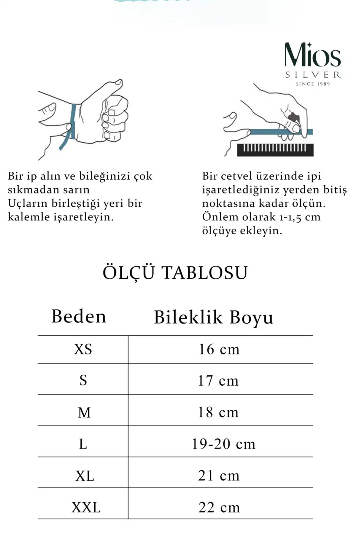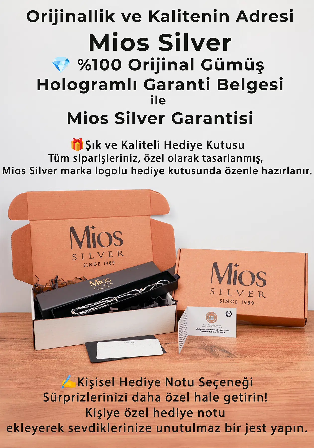 Her bir parça, 925 ayar gümüş kalitesini ve el işçiliğinin eşsiz detaylarını taşır. Mios Silver garanti sertifikasıyla gelen ürünlerimiz, uzun ömürlü yapısı ve dayanıklılığıyla güvenle kullanılabilir. Tarzınızı en iyi yansıtan zincir boyunu seçmek için 22 cm ölçüsünü tercih edebilirsiniz.